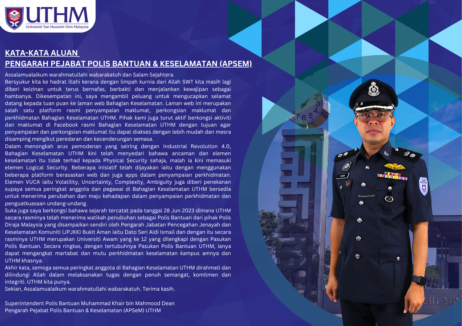 KATA-KATA ALUAN PENGARAH PEJABAT POLIS BANTUAN & KESELAMATAN (APSeM)